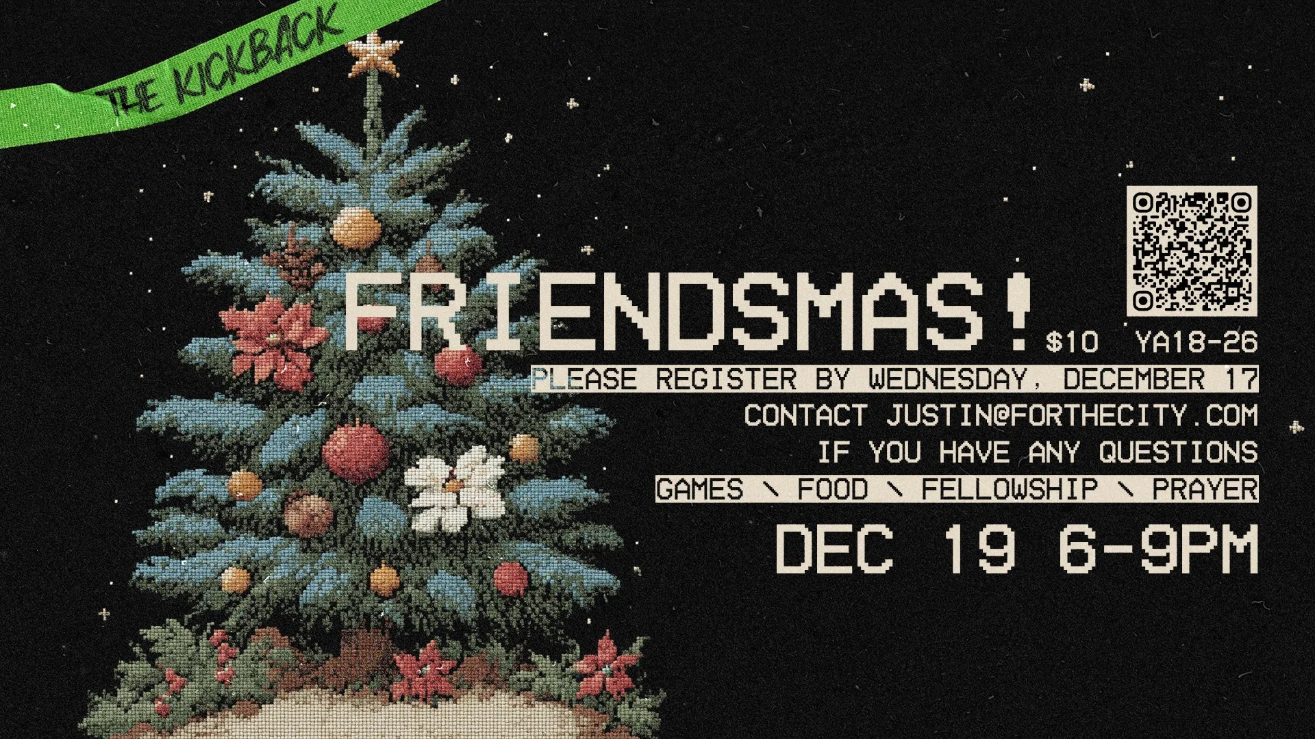 ’Tis the season to celebrate with Christ-like community! Join us on December 19th from 6-9pm for our YA Friendsmas Kickback. Come enjoy great food, worship, festive games, and a night filled with joy as we celebrate the Christmas season together as one unified body. Register by December 17th!